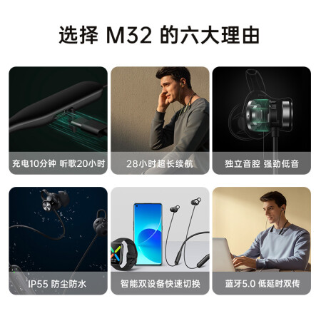 OPPO Enco M32雅绿 挂脖式运动无线蓝牙耳机 颈挂式超长续航 游戏音乐耳机通用华为苹果小米手机