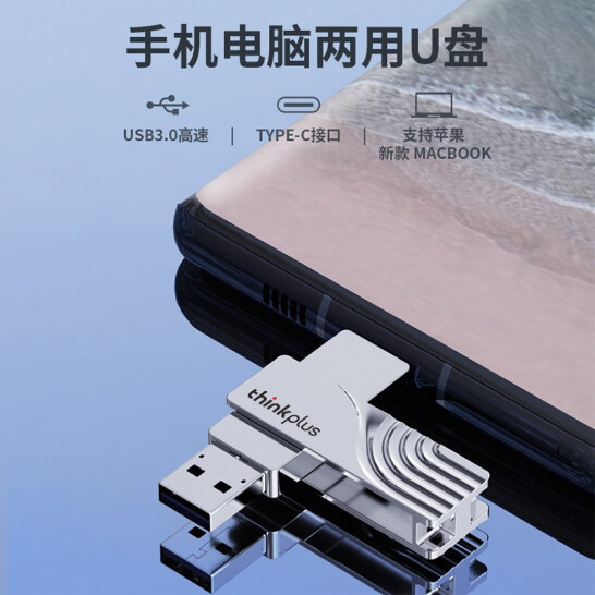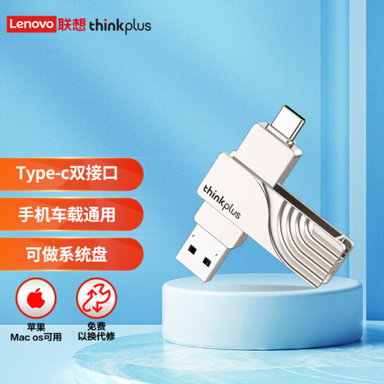联想(thinkplus)32GB手机U盘双接口Type-C USB高速优盘 车载平板电脑办公多用TPCU301银色 |