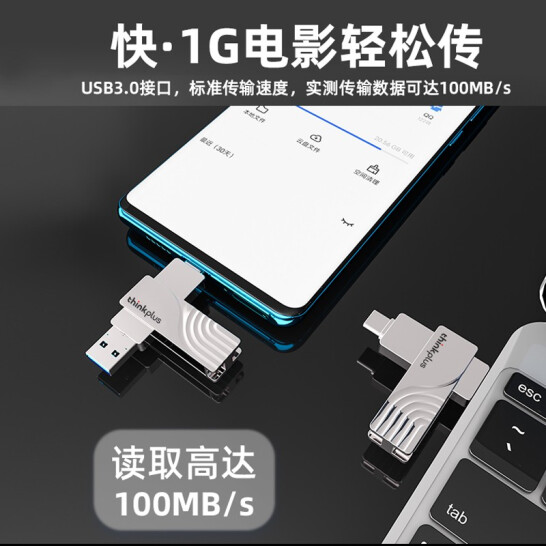 联想(thinkplus)128GB手机U盘双接口Type-C USB高速优盘 车载平板电脑办公多用TPCU301银色