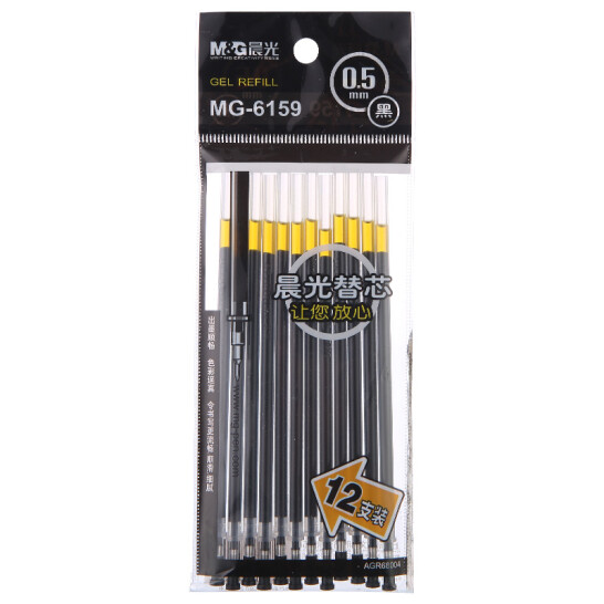 晨光(M&G) 12支/盒MG6159 文具0.5mm黑色学生考试中性笔芯 葫芦头签字笔替芯 实惠装水笔芯(支)
