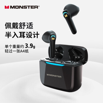 魔声(Monster) GT11真无线蓝牙耳机智能降噪运动半入耳式游戏音乐双模式耳机小巧舒适 银白色【HiFi音质+30h续航+智能降噪】