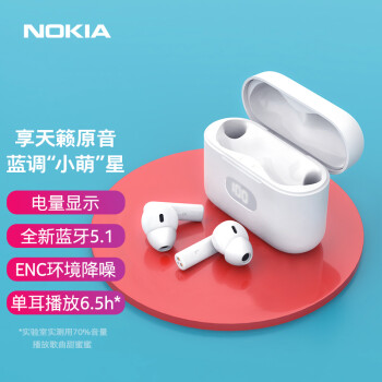 诺基亚(NOKIA)E3102真无线蓝牙耳机迷你半入耳式音乐耳机运动跑步蓝牙5.1主动降噪ENC通话 白色 |