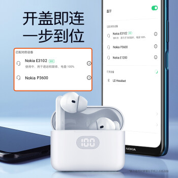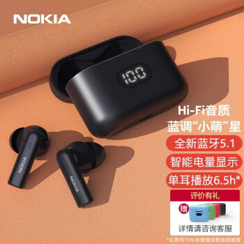 诺基亚(NOKIA)E3102真无线蓝牙耳机迷你半入耳式音乐耳机运动跑步蓝牙5.1主动降噪ENC通话 黑色 |