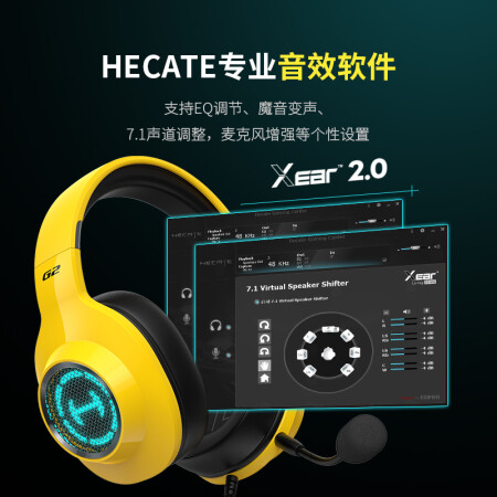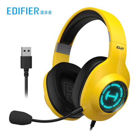 漫步者(EDIFIER)HECATE G2专业版 USB7.1声道 游戏耳机电竞耳麦头戴式电脑耳机麦克风吃鸡耳机带线控 兰博黄