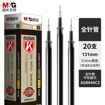 晨光(M&G)文具0.5mm黑色中性笔芯 学生考试全针管签字笔替芯 水笔芯 20支/盒AGR640C3 |