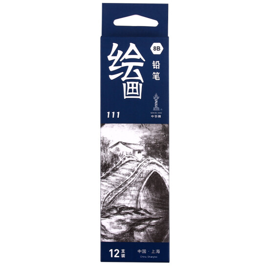 中华 111-8B 素描铅笔绘图铅笔 粗杆8B美术写生铅笔12支/盒 |