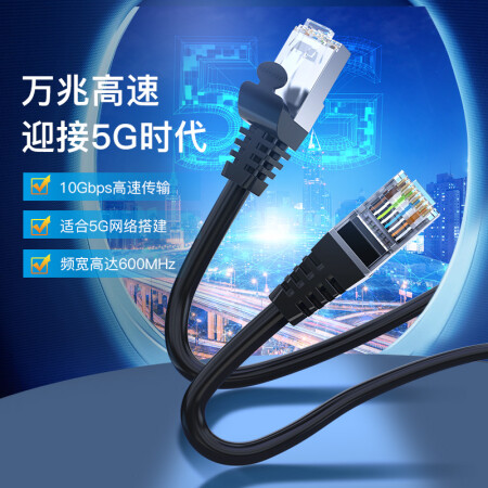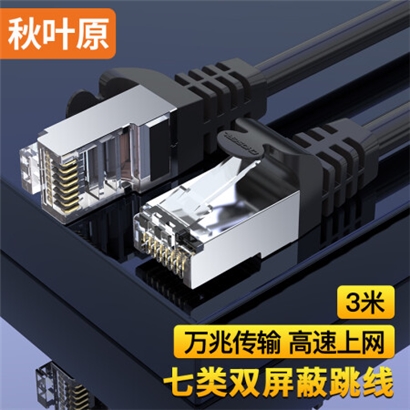 秋叶原(CHOSEAL)七类网线 Cat7类纯铜双屏蔽万兆网络连接线 7类宽带电脑游戏监控网络跳线3米 QJ7101BKT3