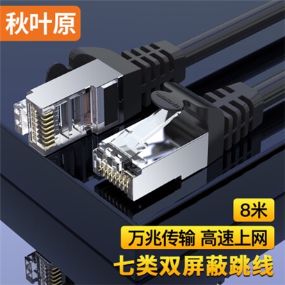 秋叶原(CHOSEAL)七类网线 Cat7类纯铜双屏蔽万兆网络连接线 7类宽带电脑游戏监控网络跳线8米 QJ7101BKT8 |