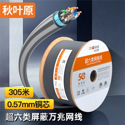 秋叶原(CHOSEAL)超六类双屏蔽网线【商用版】CAT6A类工程家装万兆抗干扰纯铜导体灰色305米QS2669AT305 |