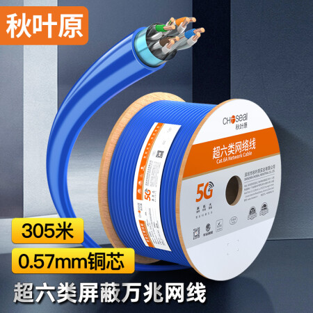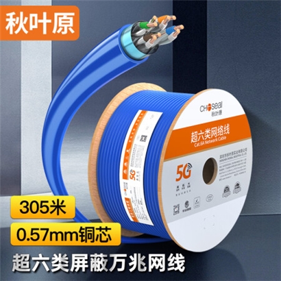 秋叶原(CHOSEAL)超六类屏蔽网线抗干扰降衰减支持万兆设备纯铜导体蓝色305米QS2669BT305 |