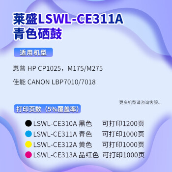 莱盛CE311A青色硒鼓 适用惠普HP CP1025nw M175A 175nw M275佳能CANON LBP7010 7018打印机粉盒