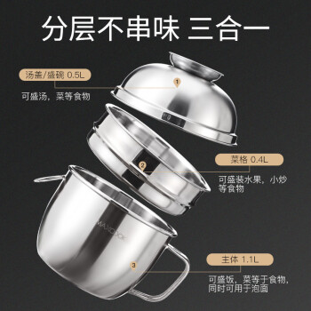 美厨(maxcook)不锈钢饭盒 快餐杯碗学生饭盒 泡面碗泡面杯 二层14cm MCFT047