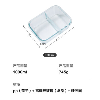 京东京造玻璃饭盒 高硼硅玻璃 烤箱微波炉加热饭盒 (2分隔 1000ml) |