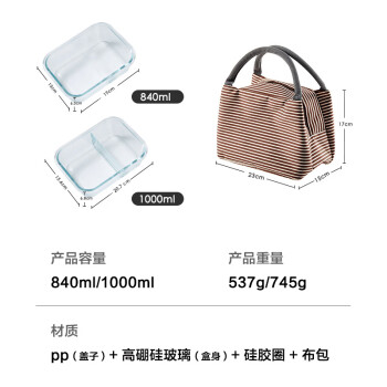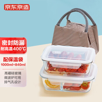 京东京造 玻璃饭盒 高硼硅玻璃 微波炉饭盒 3件套(1000ml+840ml+保温袋) |