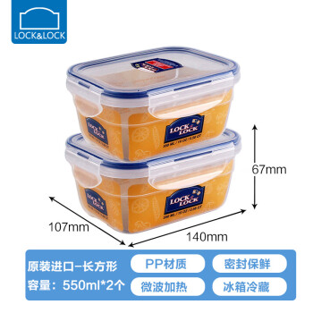 乐扣乐扣 进口保鲜盒 微波炉饭盒塑料餐盒密封便当冰箱收纳盒长方形550ML*2 |