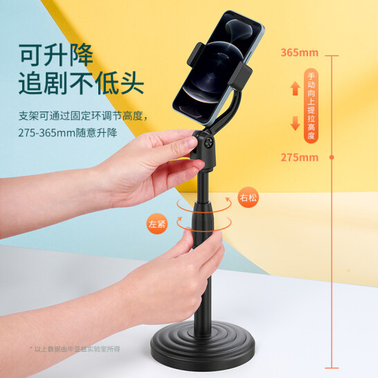 毕亚兹 手机支架网红直播考试上网课桌面懒人支架 可俯拍摄伸缩调节 办公室学生宿舍追剧神器B13黑色 |