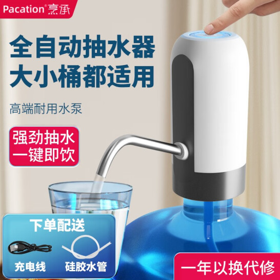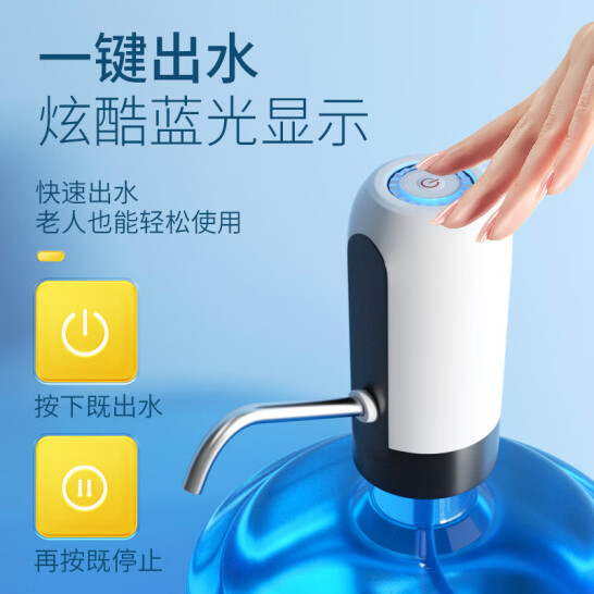 桶装水抽水器电动压水器自动上水器纯净水桶取水器出水器饮水机泵吸水器抽水泵 小灵白【蓝光款】一按出水 |
