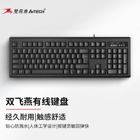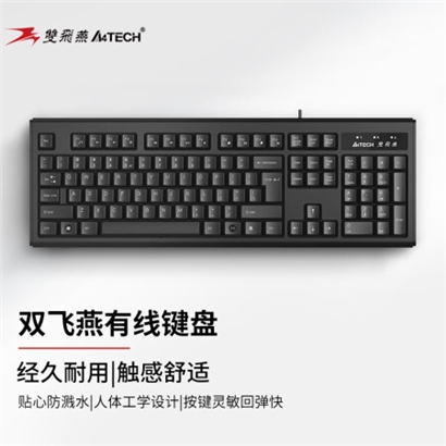 双飞燕(A4TECH) WK-100 有线键盘 办公打字用薄膜键盘笔记本外接台式电脑通用键盘104键 USB接口 黑色