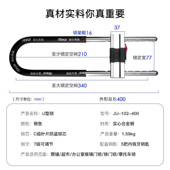 U型锁 双开门锁 玻璃门锁 抗剪防撬u型锁 防盗锁具挂锁 摩托车电瓶车锁 |