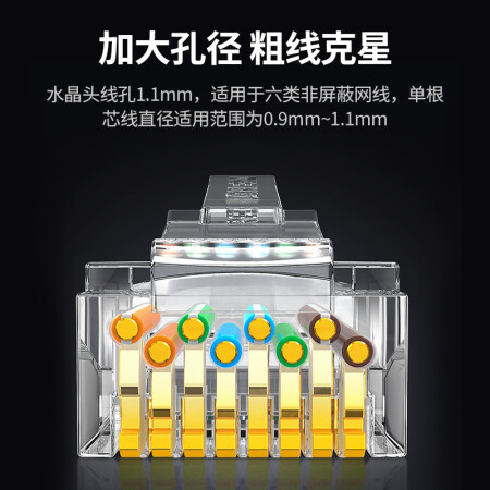 绿联(UGREEN)六类水晶头 50U加厚镀金网络接头 RJ45工程级8P8C电脑网线连接器 Cat6接头 100个装
