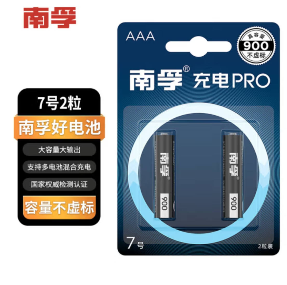 南孚(NANFU)7号充电电池2粒 镍氢耐用型900mAh 适用于玩具车/血压计/挂钟/鼠标键盘等 AAA |