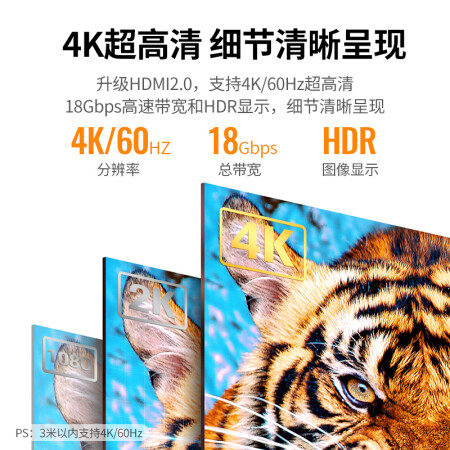 绿联 HDMI线2.0版 4K数字高清线 3D视频线 笔记本电脑机顶盒连接电视显示器投影仪数据连接线 0.5米
