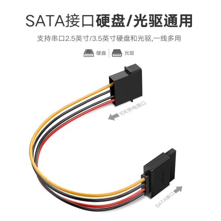 绿联(UGREEN)sata电源线 台式主机机箱电脑连接固态机械硬盘IDE大4pin转15pin转接头转换线 0.2米 50720