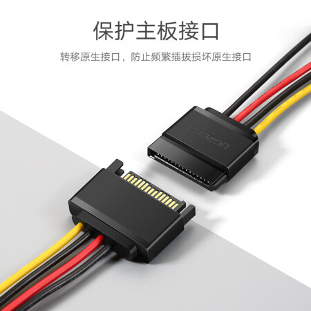 绿联(UGREEN)sata线 台式主机机箱15pin硬盘接口延长线一分二1分2 硬盘光驱电源线串口数据转接线 50719 |