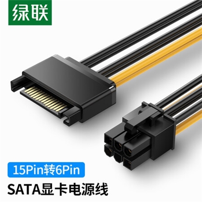 绿联(UGREEN)显卡电源线 台式主机机箱sata电源供电转接线 15p转6p反向电源连接线 15针转6PIN转换头 50943 |