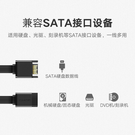 绿联(UGREEN)高速SATA3.0硬盘数据连接线 外接固态机械硬盘光驱串口线电源双通道转换线 母头 0.5米50399