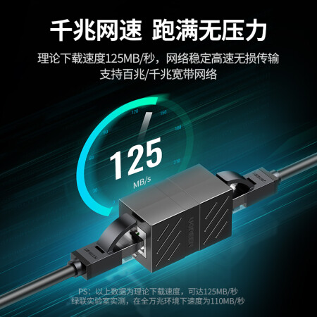 绿联 网线转接头 对接头 千兆屏蔽网络延长连接器 RJ45网线直通头水晶头双通头5/6类网线通用 黑色 单个装 |