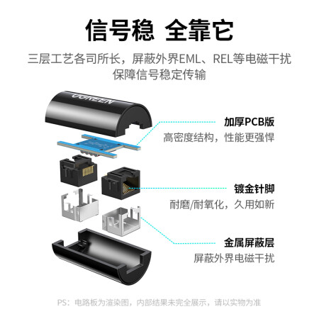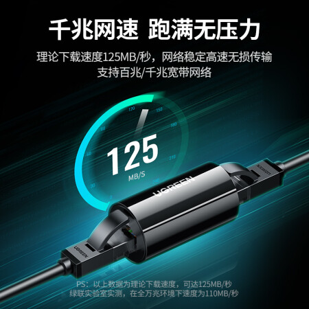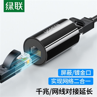 绿联 网线转接头 对接头 千兆网络延长连接器 RJ45镀金接口屏蔽款 5/6类网线通用网口直通头 黑色 单个装