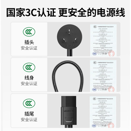 绿联 电源线 电脑主机电源线 国标三孔品字尾通用 电饭煲台式机箱显示器打印机电源连接线直插头1.5米 80770