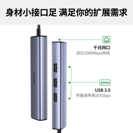 绿联 Type-C扩展坞拓展坞网线转接头USB3.0转千兆网卡口分线器转换器雷电3/4通用苹果MacBook华为联想笔记本 |