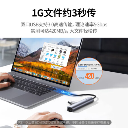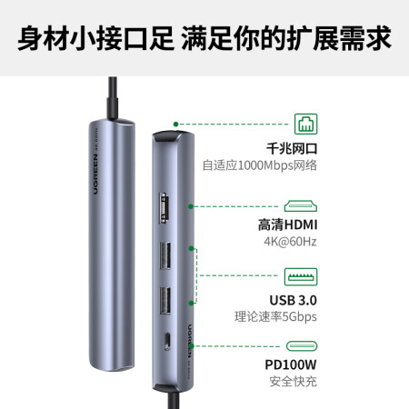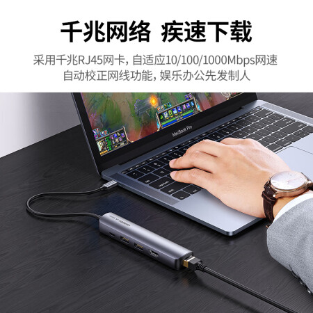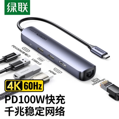 绿联 Type-C扩展坞 USB-C转HDMI拓展坞4K60Hz千兆网线转接头HUB分线器3.0适用苹果macbook笔记本电脑转换器