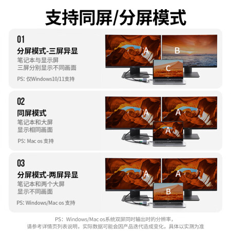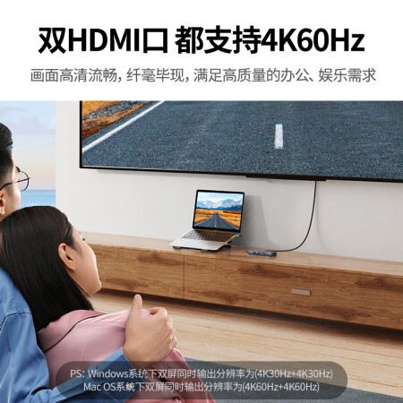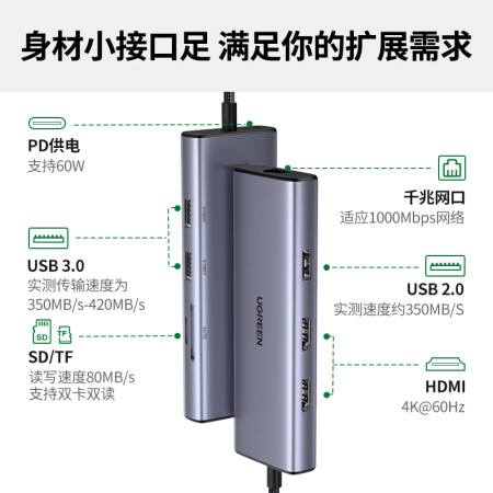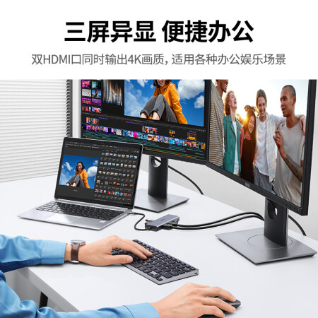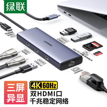 绿联 Type-C扩展坞 USB-C转双HDMI三屏异显拓展坞千兆网线口转接头HUB分线器3.0 适用苹果笔记本转换器九合一 |