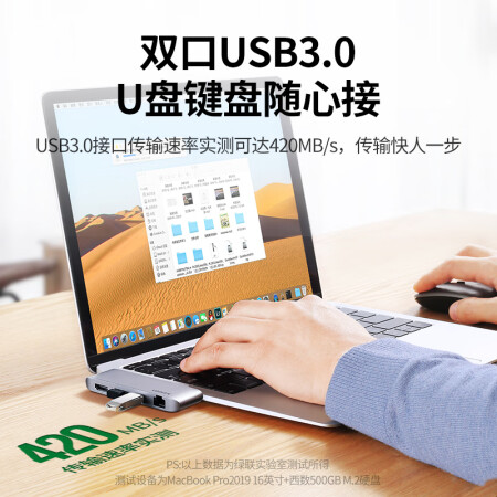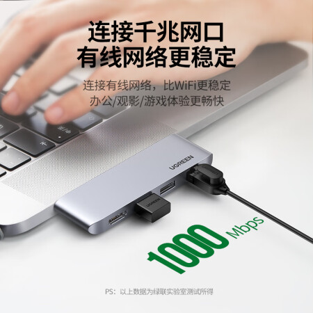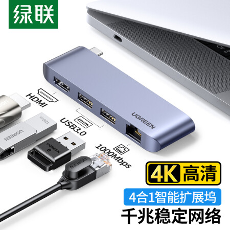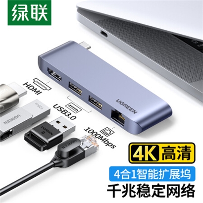 绿联 Type-C扩展坞USB-C转HDMI转换器千兆有线网卡网线口转接头分线器3.0HUB直插式拓展坞适用苹果华为笔记本