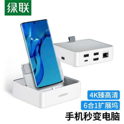 绿联 Type-C手机扩展坞立式4K投屏底座 百兆网口USB-C转HDMI拓展坞PD充电 通用华为P40/Mate40三星六合一 |