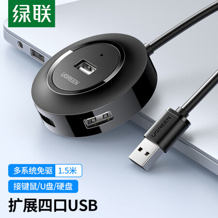 绿联(UGREEN)USB分线器2.0 4口HUB集线器扩展坞 笔记本电脑一拖四转换器多接口延长线带电源口 1.5米 20295