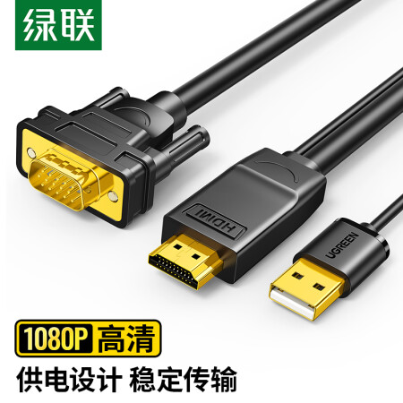 绿联 HDMI转VGA转换线 高清视频转接头 电脑显示器连接线 适用笔记本电脑电视盒子PS5接显示器投影仪 1.5米