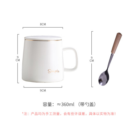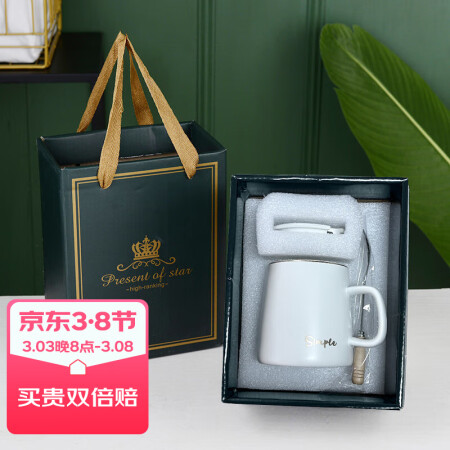 传旗陶瓷马克杯350ml带勺盖咖啡杯水杯子办公室茶杯礼盒款 白 |