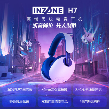 索尼(SONY)INZONE H7 高端电竞游戏耳机 无线蓝牙 头戴式 2.4GHz 虚拟7.1声道 高清麦克风 ps5适用 |