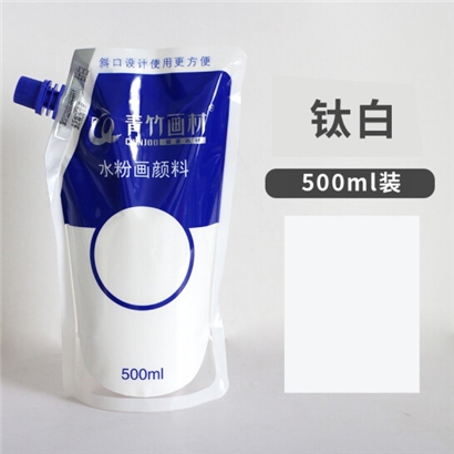 青竹画材(CHINJOO)水粉颜料补充包美术生专用绘画广告画500ml大容量袋装水粉颜料 钛白 |