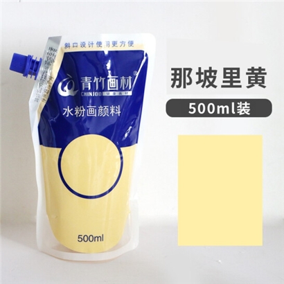 青竹画材(CHINJOO)水粉颜料补充包美术生专用绘画广告画500ml大容量袋装水粉颜料 那坡里黄 |