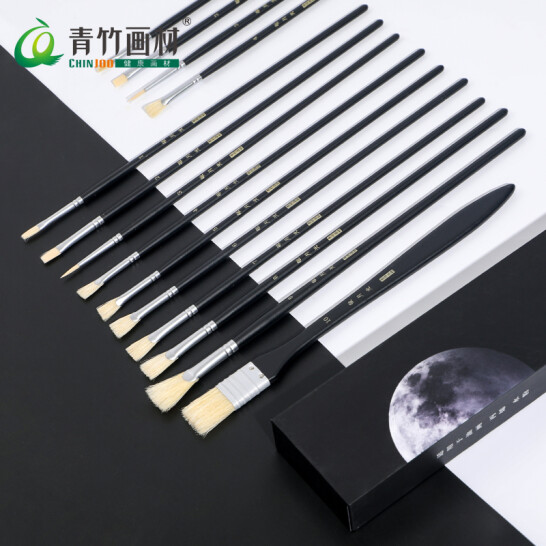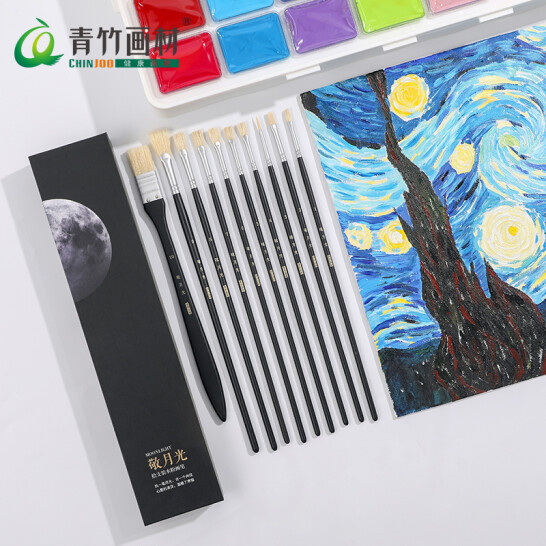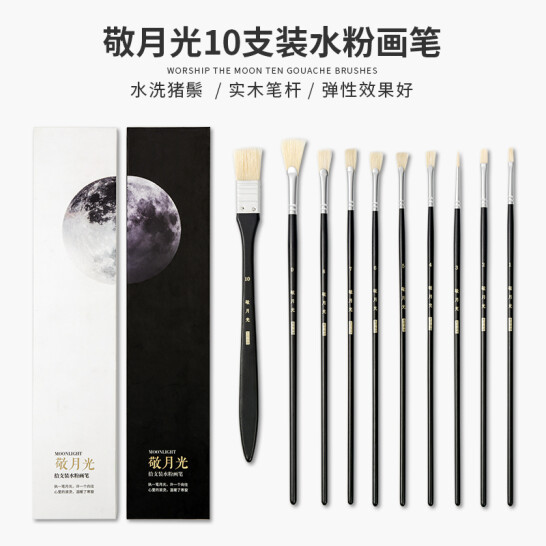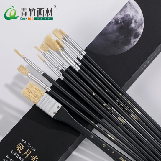 青竹画材(CHINJOO)敬月光 水粉画笔10支套装 黑色 丙烯画笔油画笔颜料画笔美术专用 |