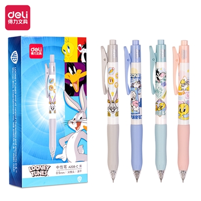 得力A208-C兔巴哥速干按动中性笔0.5mm尖锥头(黑)(支)(12支/盒,整盒销售) |