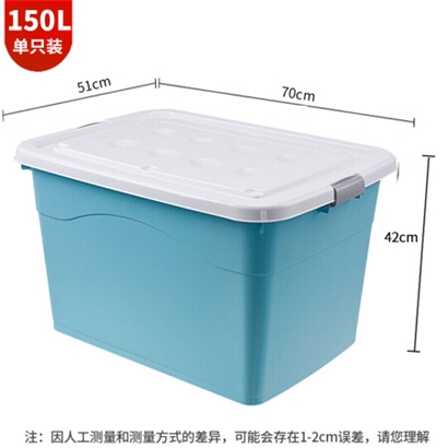 收纳箱 150L单只蓝色加大号被子衣服书籍整理箱宿舍塑料收纳盒