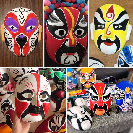 仕彩 幼儿园儿童手绘脸谱京剧面具手工制作绘画空白色diy材料包(个) 随机 |