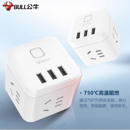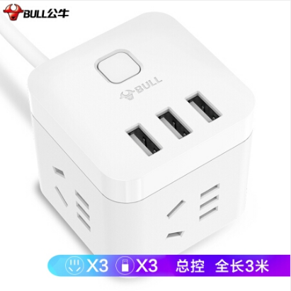 公牛(BULL) GN-U303U 魔方USB插座 插线板/插排/排插/接线板/拖线板 3USB接口+3插孔全长 3米