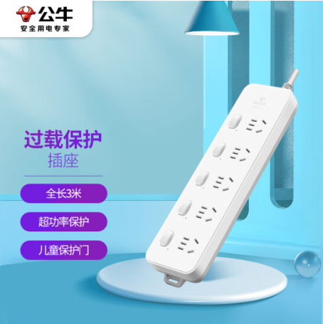公牛(BULL)插座/插线板/插排/排插/接线板/拖线板 5位分控全长3米 超功率保护插座 GN-312 |